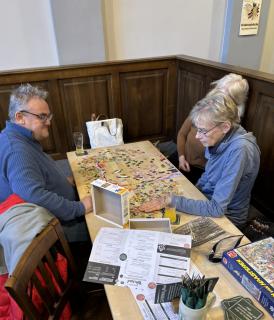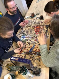Natürlich tauschten wir uns parallel zum puzzeln auch untereinander aus. Jeder hatte ja viel zu berichten, wie er z.B. am Adventskalender-Wichteln oder an der tollen Silvester-Aktion von unserem Puzzleverein teilgenommen hatte.