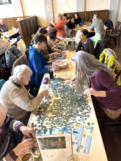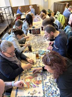 Was war das für ein schönes Wiedersehen – zum ersten Mal in diesem Jahr trafen wir uns wieder in unserem Stammlokal. Insgesamt 30 Puzzlerinnen und Puzzler jeden Alters fanden zum nun schon 25. Treffen zusammen. Dabei durften wir auch wieder einige Gäste begrüßen, welche uns zum ersten Mal besuchten und die gleich fleißig mitpuzzelten.