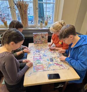 Von dem Puzzlehersteller EDUCA wurde uns anlässlich des „Internationalen Tag des Puzzles“ (29. Januar) ein besonderes Puzzle zur Verfügung gestellt. Es handelt sich um das Motiv TRAVEL COLLAGE mit 1000 Teilen. Auf den angehängten Bildern leicht zu erkennen an den abgebildeten Reiseutensilien und Modellflugzeugen. Gleich zwei verschiedene 4er-Teams machten sich an diesem Nachmittag daran es zu legen. Alle hatten viel Freude an diesem neuen Puzzle.