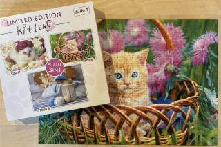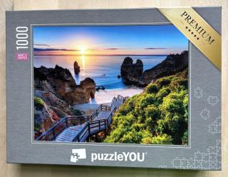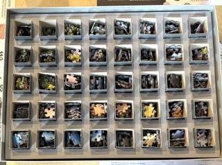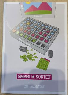Von der deutschen Firma „puzzleYOU“ erhielten wir zwei ganz besondere Exemplare mit jeweils 1000 Teilen. Diese Puzzles waren in dem sogenannten „Smart Sorted“ – Verfahren hergestellt worden. Mit diesem, inzwischen patentierten Verfahren, möchte es die Firma puzzleYOU ermöglichen, dass auch lebensältere Mitbürger oder Menschen mit Behinderungen, am Puzzlespaß teilhaben können. Die 1000 Teile sind in insgesamt 40 kleine Schachteln unterverpackt, welche einzeln aus dem Karton entnommen werden können. In jeder dieser Schachteln befinden sich jeweils 25 Puzzleteile, welche zusammen gelegt ein Teilsegment des Gesamtmotives ergeben. Dabei sind die kleinen Schachteln so im Karton angeordnet, dass sie immer zueinander passen d.h. der Anschluss an das nächste Segment gegeben ist.