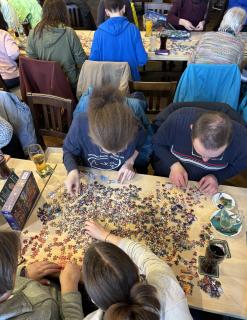 Was war das für ein schönes Wiedersehen – zum ersten Mal in diesem Jahr trafen wir uns wieder in unserem Stammlokal. Insgesamt 30 Puzzlerinnen und Puzzler jeden Alters fanden zum nun schon 25. Treffen zusammen. Dabei durften wir auch wieder einige Gäste begrüßen, welche uns zum ersten Mal besuchten und die gleich fleißig mitpuzzelten.